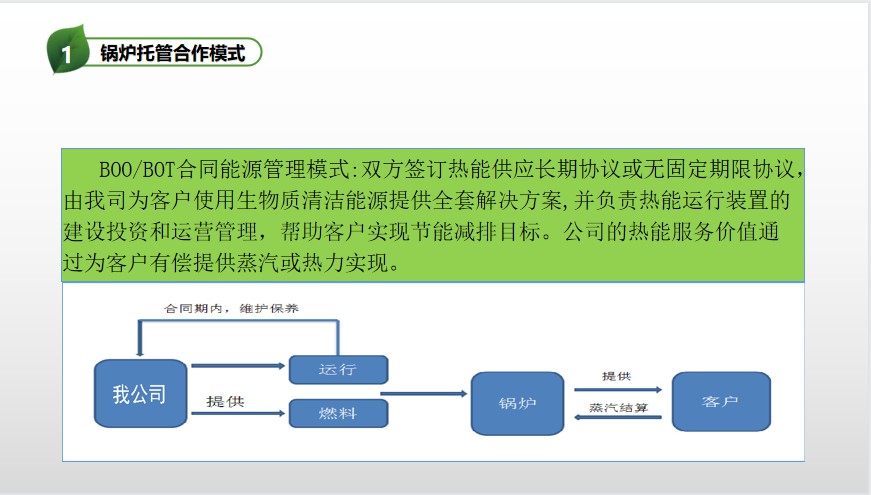 樂山勇騰生物能源有限公司,位于四川省樂山市五通橋區(qū)石麟鎮(zhèn)麒麟街463號(hào)。是一家集生物質(zhì)能源技術(shù)研發(fā)、技術(shù)推廣、產(chǎn)品制造、銷售為一體的企業(yè),專業(yè)從事生物質(zhì)能源項(xiàng)目投資,設(shè)備生產(chǎn),安裝運(yùn)營,燃料供應(yīng),能源托管的綜合性服務(wù)企業(yè)。公司依托強(qiáng)大的研發(fā)和技術(shù)實(shí)力,在實(shí)踐中逐步形成了富有競爭力的“3+1”業(yè)務(wù)運(yùn)營模式(燃料生產(chǎn)與銷售、鍋爐承包托管業(yè)務(wù)、設(shè)備節(jié)能改造+供熱項(xiàng)目投資運(yùn)營),年銷售額達(dá)數(shù)千萬元。